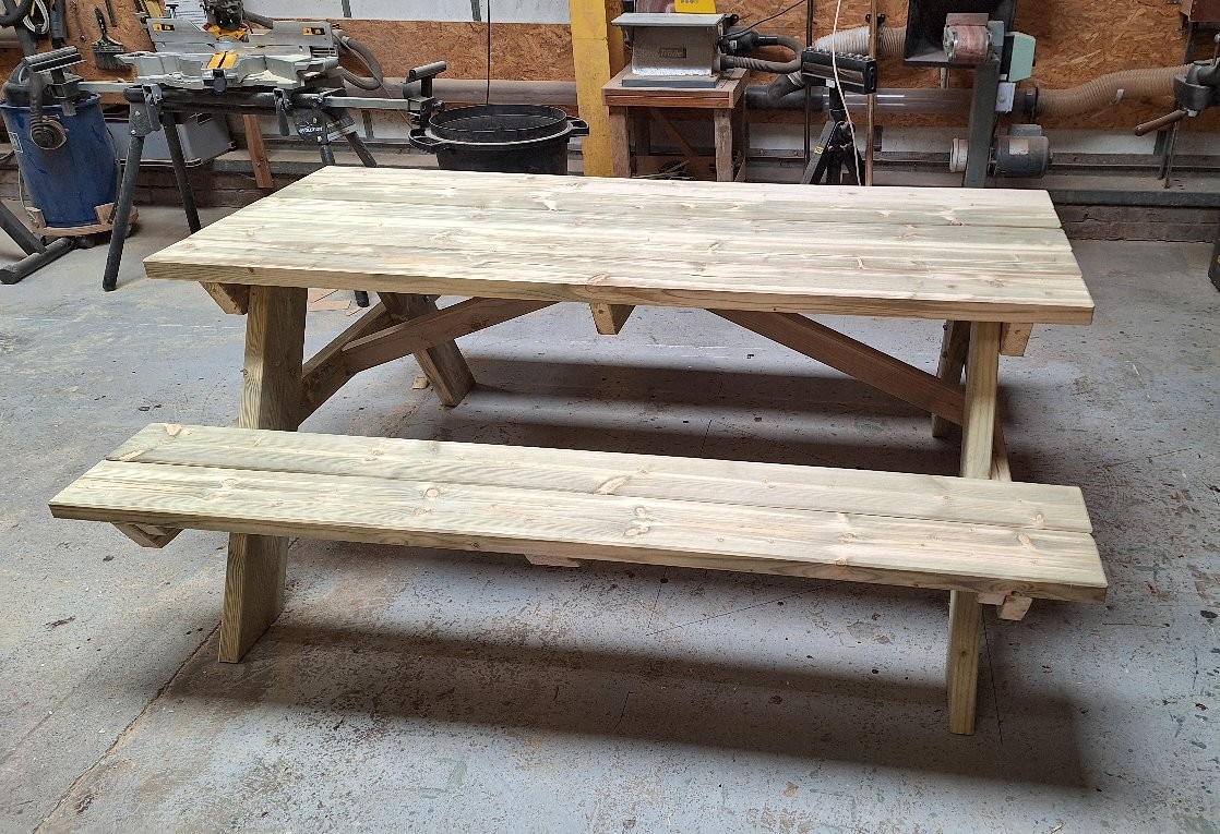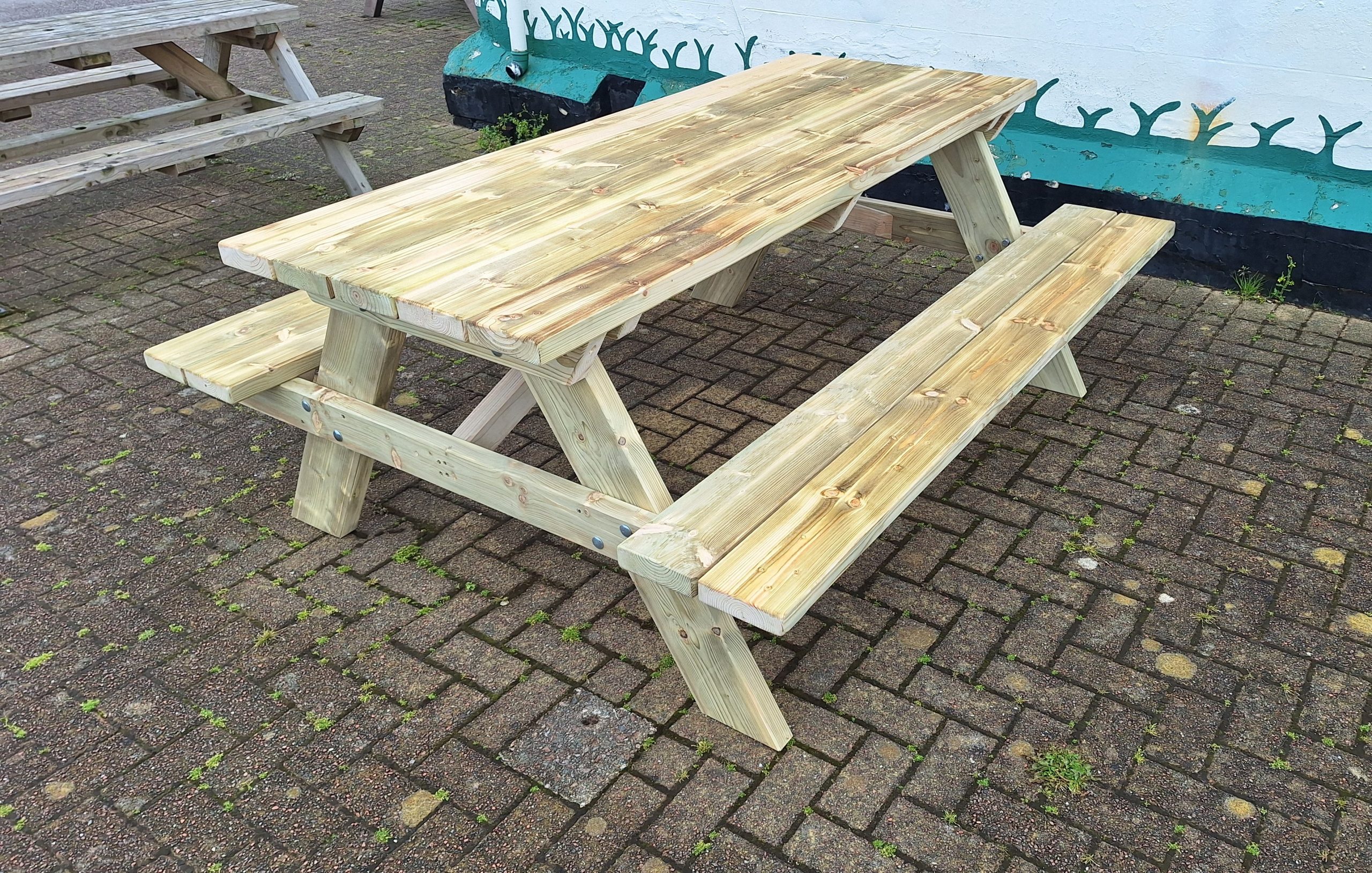 Delivered today; the first of two picnic tables for the Rock Cafe.